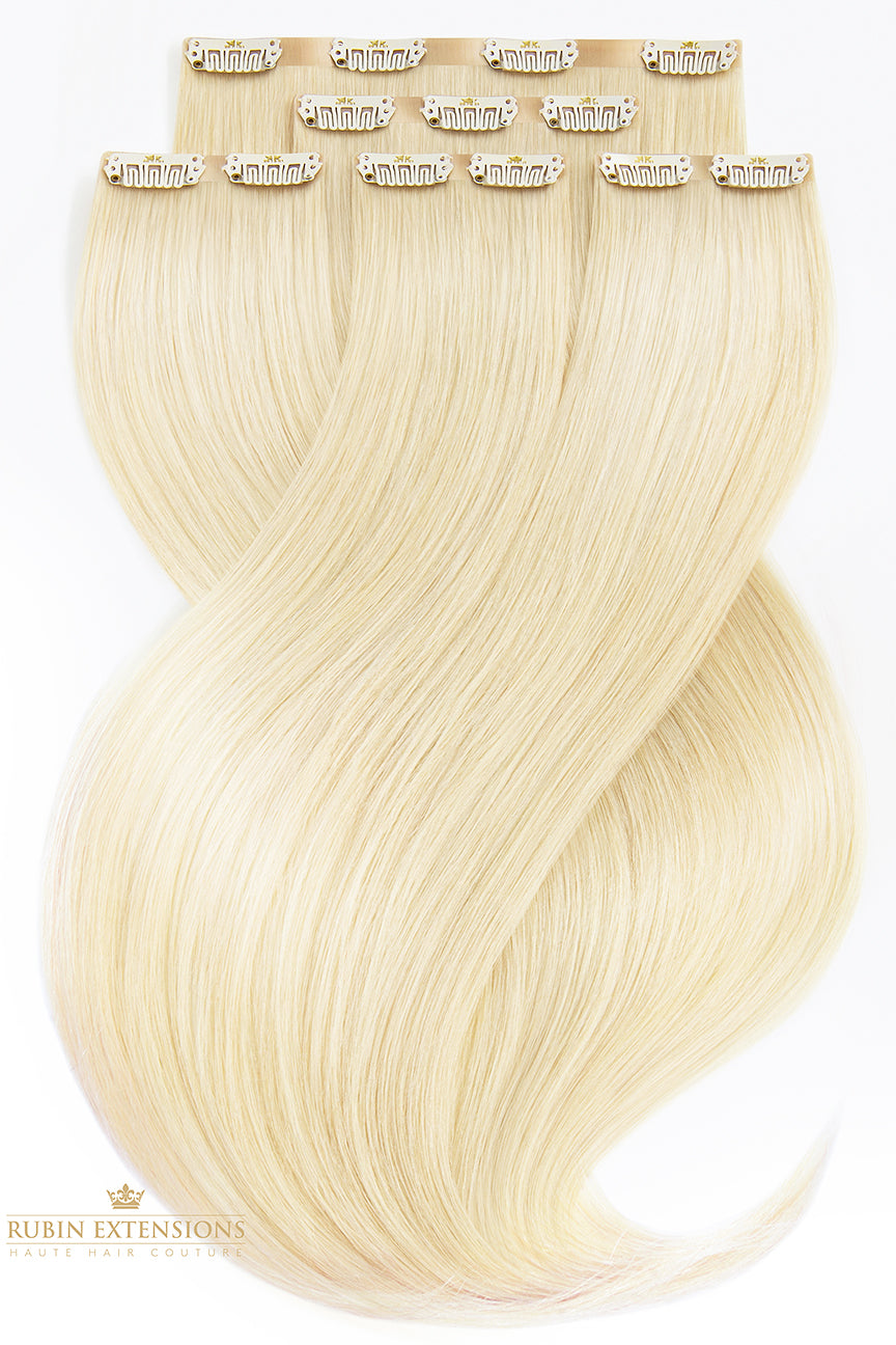 Zestaw Pure Diamonds składa się z 5 tresek z 13 klipsami. Każda paczka zawiera wysokiej jakości, 100% REMY, słowiańskie włosy naturalne o różnych długościach do wyboru.1 szt. z 4 klipsami - 19 cm szerokości